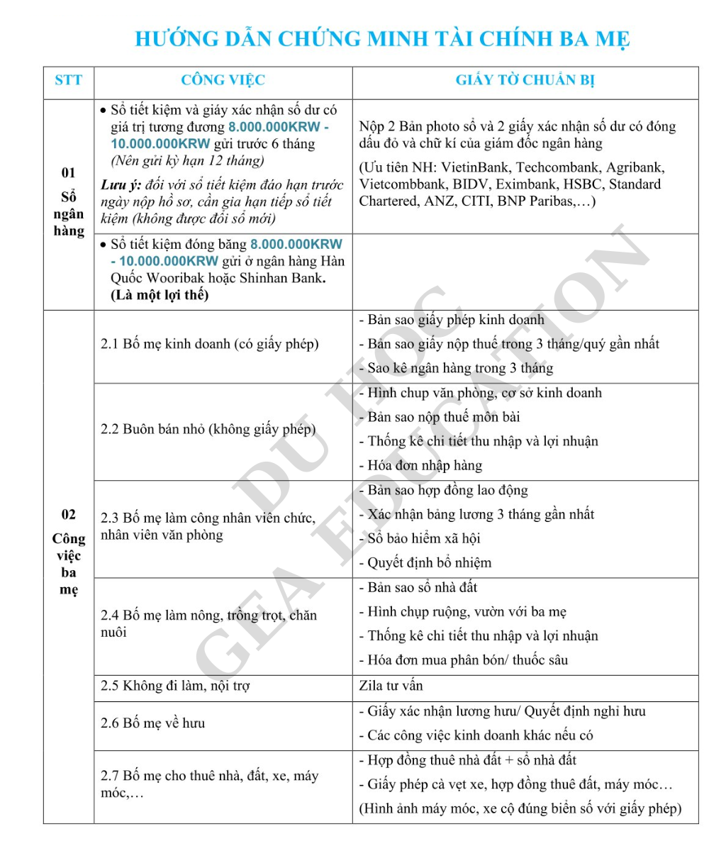 HƯỚNG DẪN CHỨNG MINH TÀI CHÍNH DU HỌC HÀN QUỐC